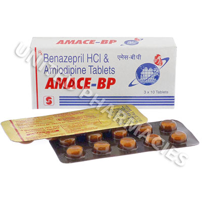 Amace-BP is a combination of Benazepril (an ACE inhibitor) and Amlodipine (a calcium channel blocker). It is used to treat high blood pressure (hypertension). It works by relaxing the blood vessels, which allows the blood to flow more freely.