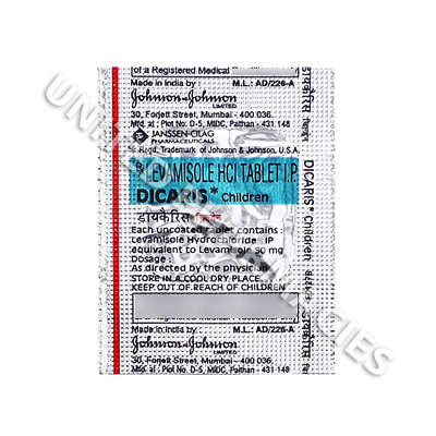 Dicaris (Levamisole) comes as uncoated tablets. It is available as 2 different strengths, 50mg and 150mg. Patients treating colon cancer or any other conditions will require close and constant medical supervision and monitoring of their progress and symptoms. Full compliance with all instructions provided by the physician in charge of treatment is required at all times to ensure that the maximum benefits of treatment are achieved. Never exceed the recommended dosage and ensure that you attend all scheduled medical appointments.