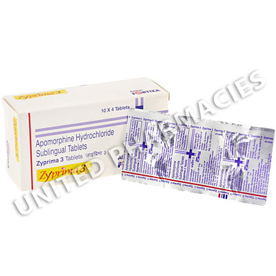 Zyprima 3 (Apomorphine Hydrochloride) is used to treat male sexual dysfunction. It works by stimulating a brain chemical called dopamine, which heightens sexual interest and sensations, helping the patient to achieve and maintain erections.